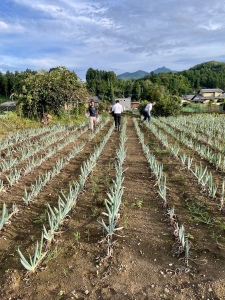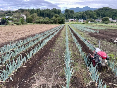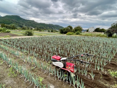 同日、午前中は、3352B区画に、下仁田葱専用肥料10kg程度を散布して中耕。
