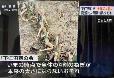 ▽群馬下仁田名産の下仁田ネギ、夏の猛暑により生育に影響。生産現場は対応におわれる~