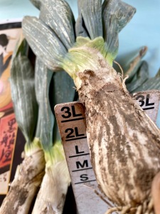 同じ3Lでも、葉っぱがねじれていたり、白根と葉が長くて巨大な下仁田っぽくない3Lは、上部にスジっぽさが残る場合があるので、それなら高品質の2L、Lサイズを選ぶ。