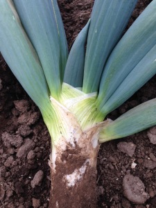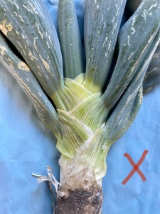 竹の節のように上に伸びながら葉っぱが出ている下仁田ねぎは、襟元(首元)がゆるく、スジっぽさが残ります。