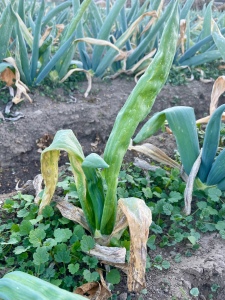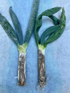 まずは天パー(萎縮病)のを食べ、つぎに10日前くらいの通常の下仁田ねぎ。