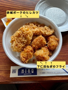 それじゃあってんで、下仁田ねぎの串カツセットを串無しにしたテイクアウト弁当をお願いしてみた。(ヒレカツ2枚+かつ丼のタレをくぐらせた下仁田ねぎのフライ4個)