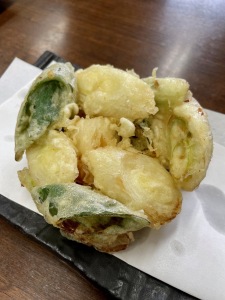 というのも、去年の11月26日も、下仁田ねぎのかき揚げをいただいていて、そのときは、スジっぽさもあるし、味の余韻も薄かった。(下画像が11月に食べた下仁田ねぎのかき揚げ)