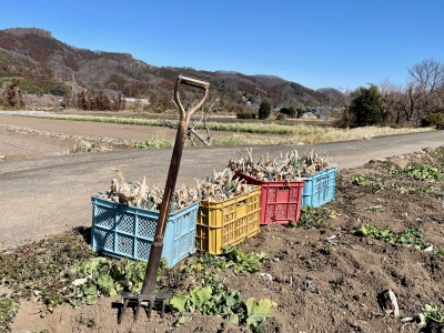 毎年の事ではあるけれど、まわりの他の農家が、あっちこっちの畑でトラクターを動かし春の準備を進めている中、ひとり掘り取り(収穫)を続けているのは、作業が遅れているようで、なんだか自分だけが冬に取り残されている感じがする。