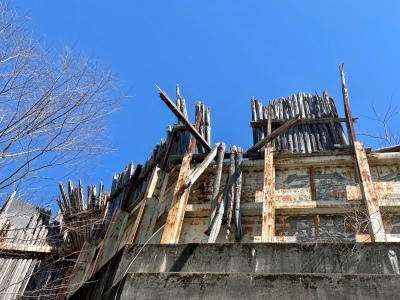 ライダー(バイカー?)は、坑道の2つの穴の前で、マイバイクを置き、写真を撮るようだけど、個人的には穴の上の朽ちた板塀?みたいなのが、砦のようでよかった。